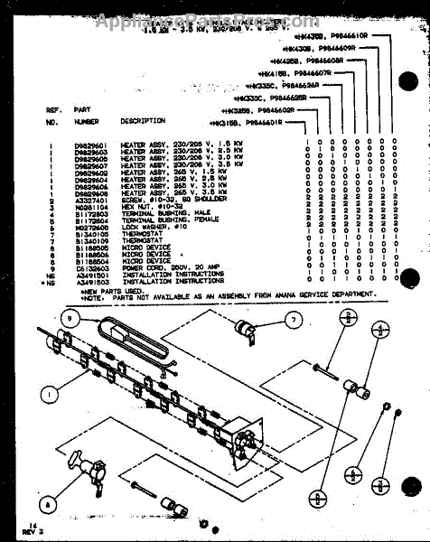 Parts for Amana HK335C/P9846626R: Pheater Kits - Single Stage Heaters (Hk315b / P9846601r) (Hk325b / P9846602r) (Hk330c / P9846625r) (Hk335c / P9846626r) (Hk415b / P9846607r) (Hk425b / P9846608r) (Hk430b / P9846609r) (Hk435b / P9846610r) Parts