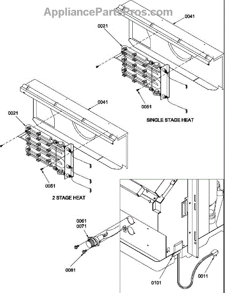 Parts for Amana PTC093A35BB/P1225501R: Heater Parts