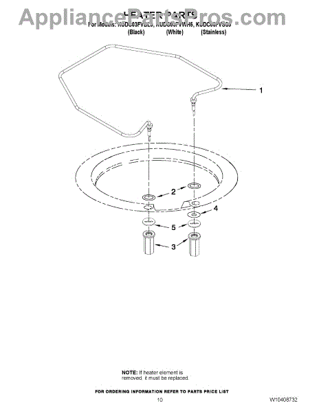 Parts for Kitchenaid KUDC03FVWH5: 08 - Heater Parts
