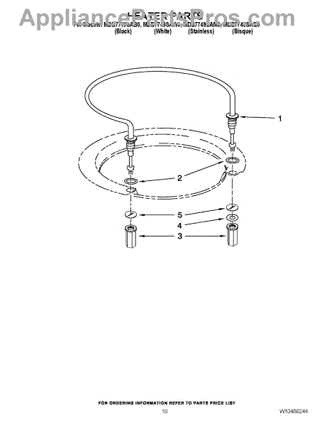 The Heating Element is an OEM part for Whirlpool dishwashers. This element is for heating the water to the required temperature and for the drying cycle, allowing your dishes come out clean and dry. It's positioned at the bottom of the dishwasher tub, where it heats the water and aids in the drying process by evaporating moisture from the dishes.