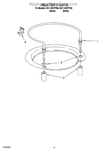 Parts for Whirlpool DU1148XTPB6: 05 - Heater Parts