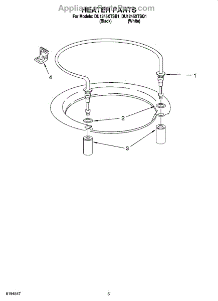 Parts for Whirlpool DU1245XTSQ1: 05 - Heater Parts