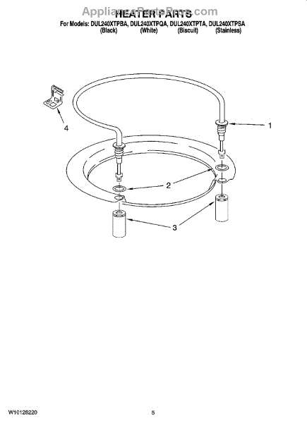 Parts for Whirlpool DUL240XTPQA: 05 - Heater Parts