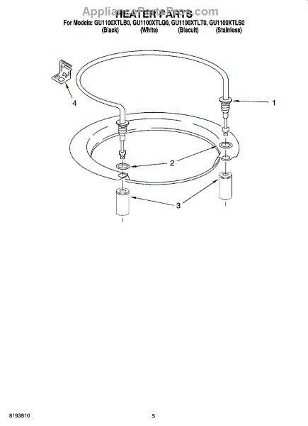 Parts for Whirlpool GU1100XTLQ0: 05 - Heater Parts