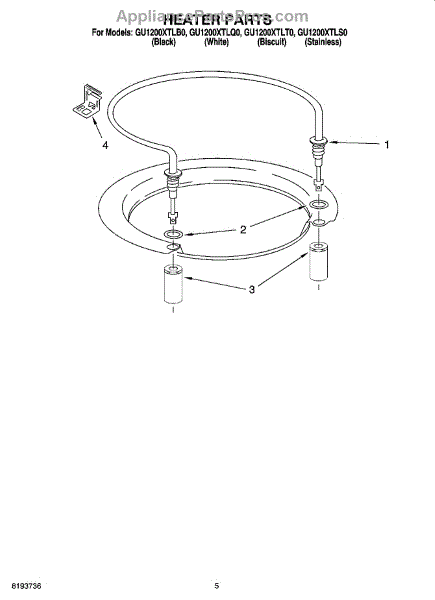 Parts for Whirlpool GU1200XTLQ0: 05 - Heater Parts