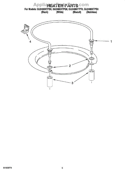 Parts for Whirlpool GU2400XTPQ0: 05 - Heater Parts