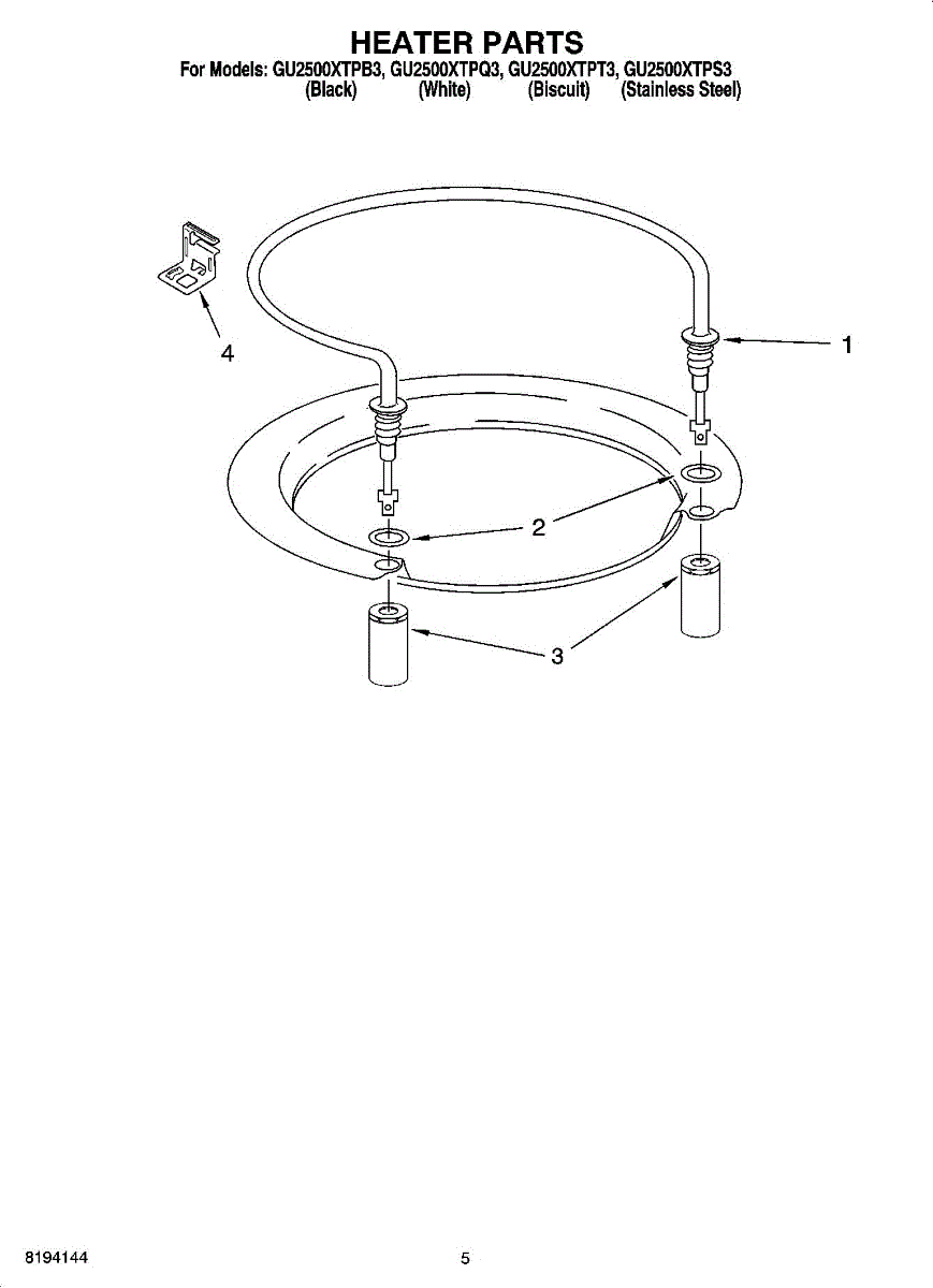 Parts for Whirlpool GU2500XTPT3: 05 - Heater Parts