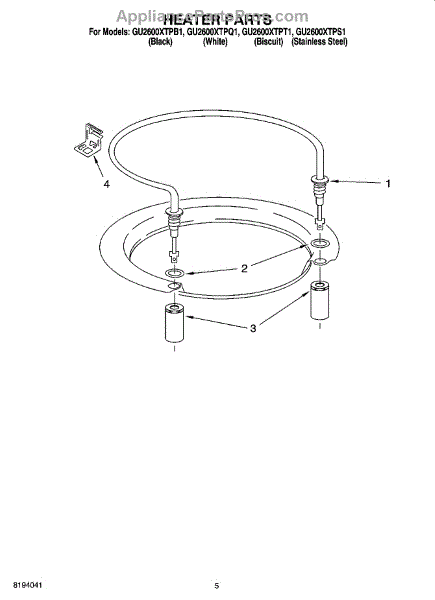Parts for Whirlpool GU2600XTPQ1: 05 - Heater Parts