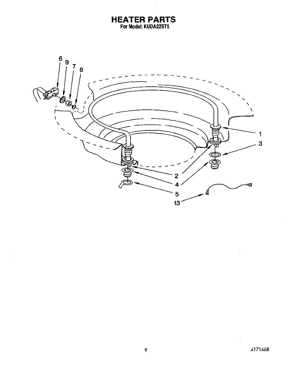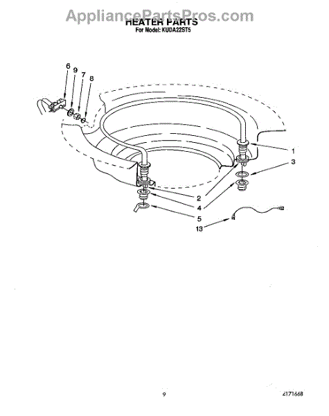 Parts for Kitchenaid KUDA22ST5: 07 - Heater Parts
