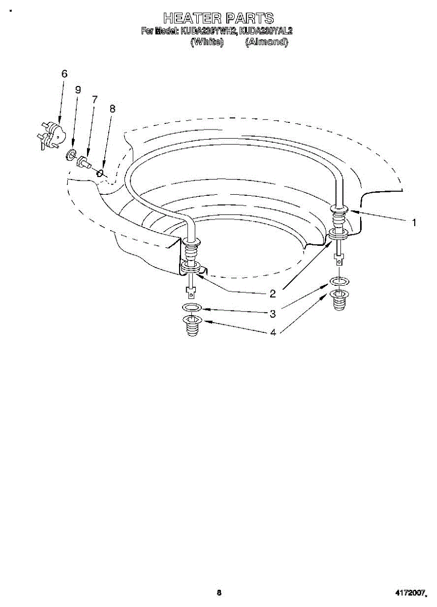 Parts for Kitchenaid KUDA230YAL2: 06 - Heater Parts