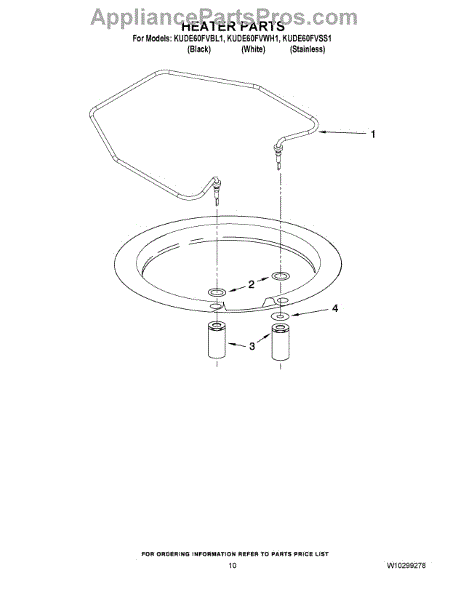 Parts for Kitchenaid KUDE60FVWH1: 08 - Heater Parts