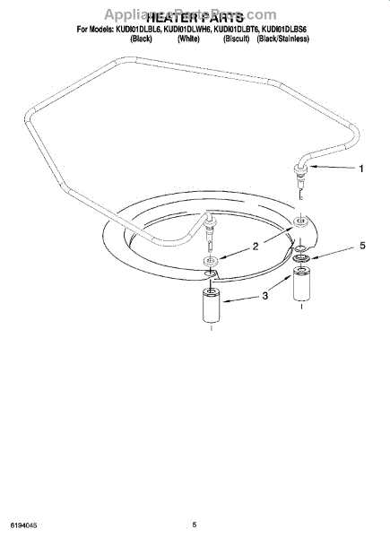 Parts for Kitchenaid KUDI01DLBS6: 05 - Heater Parts