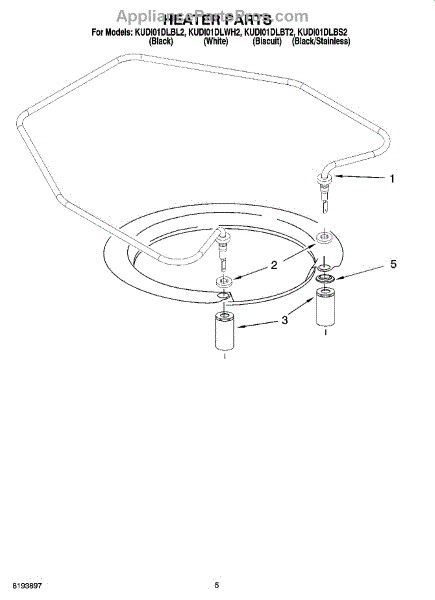 Parts for Kitchenaid KUDI01DLBT2: 05 - Heater Parts