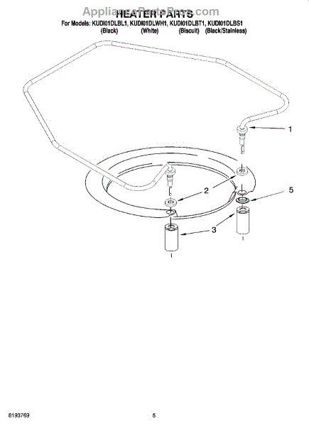 Parts for Kitchenaid KUDI01DLWH1: 05 - Heater Parts
