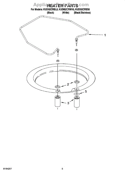 Parts for Kitchenaid KUDI02CRWH0: 05 - Heater Parts