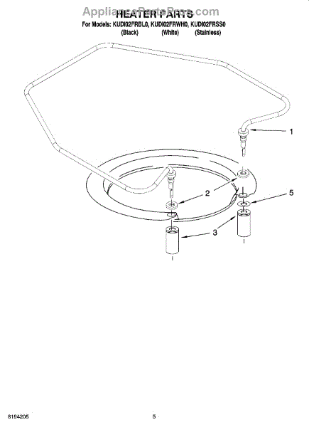 Parts for Kitchenaid KUDI02FRWH0: 05 - Heater Parts