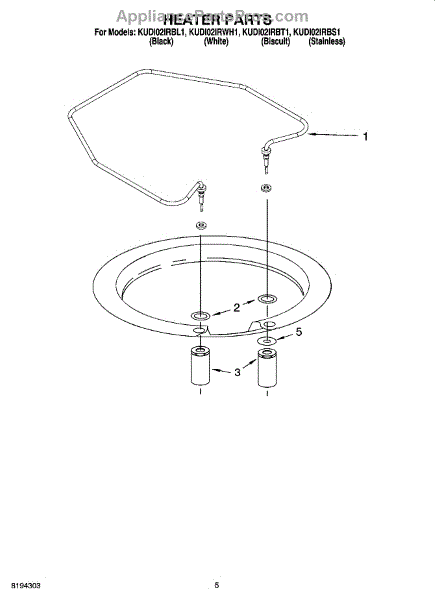 Parts for Kitchenaid KUDI02IRWH1: 05 - Heater Parts
