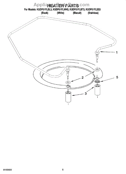 Parts for Kitchenaid KUDP01FLBT3: 05 - Heater Parts