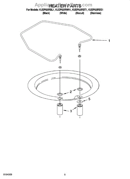 Parts for Kitchenaid KUDP02IRWH1: 05 - Heater Parts