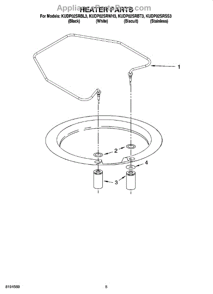 Parts for Kitchenaid KUDP02SRWH3: 05 - Heater Parts