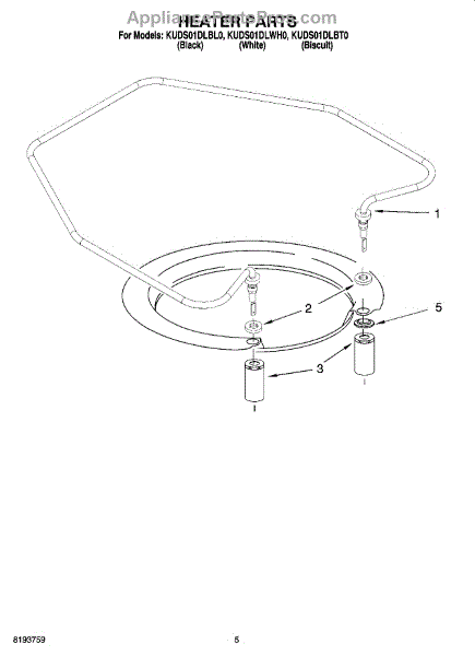 Parts for Kitchenaid KUDS01DLBT0: 05 - Heater Parts