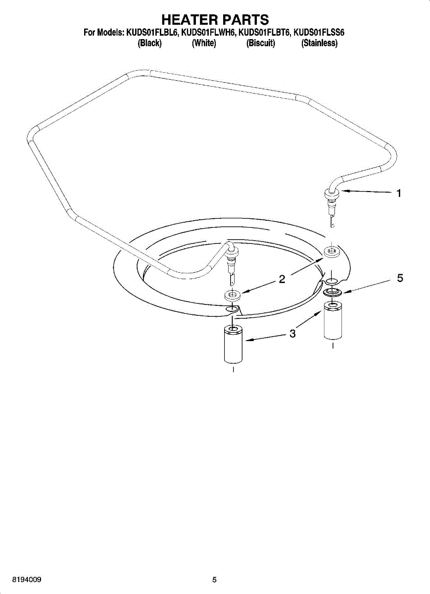 Parts for Kitchenaid KUDS01FLSS6: 05 - Heater Parts