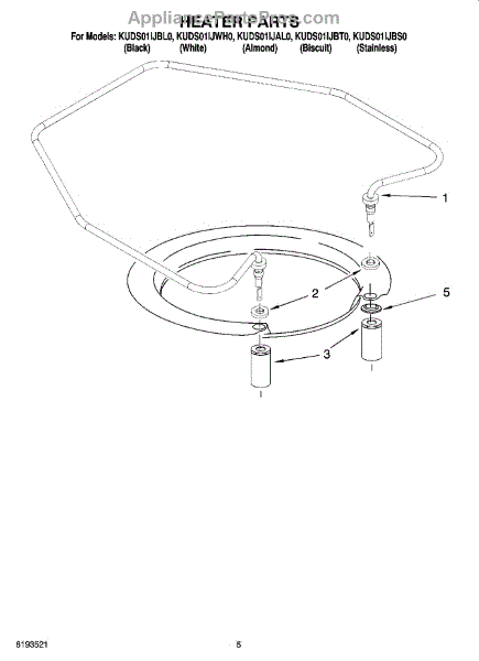 Parts for Kitchenaid KUDS01IJBT0: 05 - Heater Parts