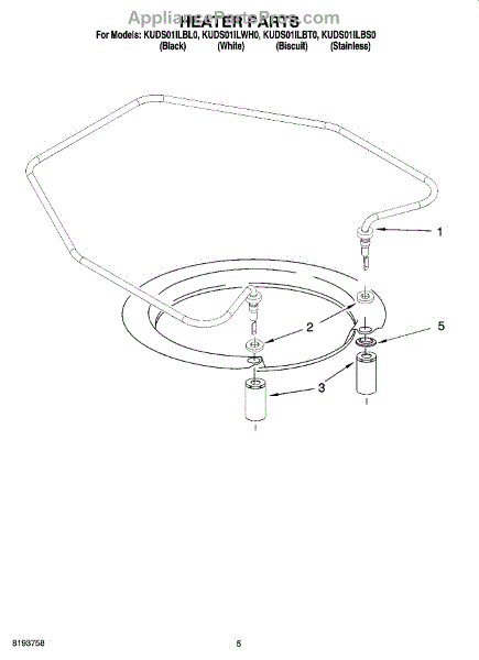 Parts for Kitchenaid KUDS01ILWH0: 05 - Heater Parts