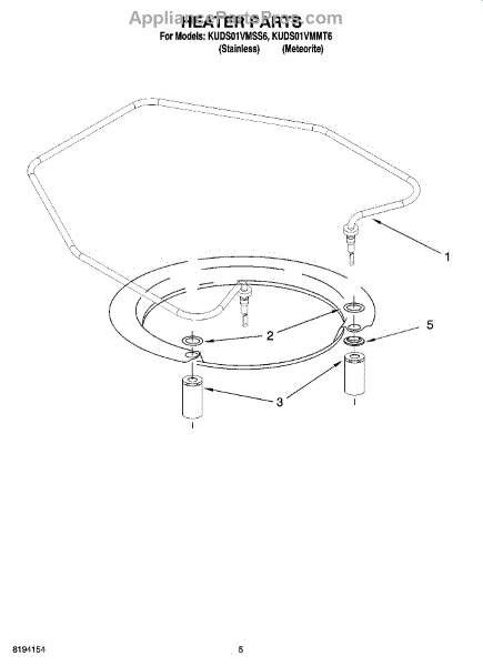 Parts for Kitchenaid KUDS01VMSS6: 05 - Heater Parts