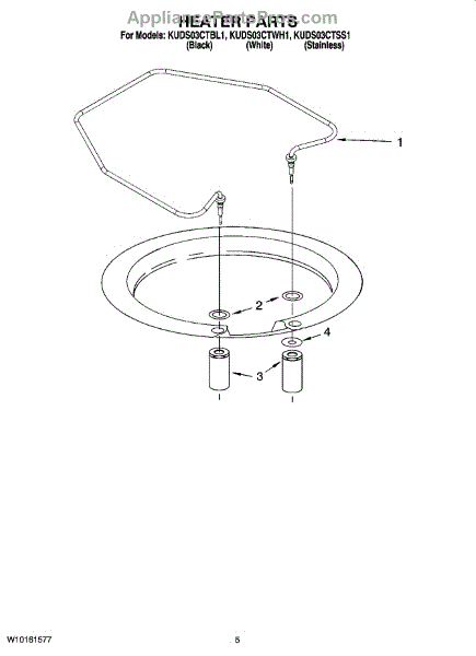 Parts for Kitchenaid KUDS03CTWH1: 05 - Heater Parts