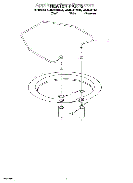 Parts for Kitchenaid KUDU02FRBL1: 05 - Heater Parts