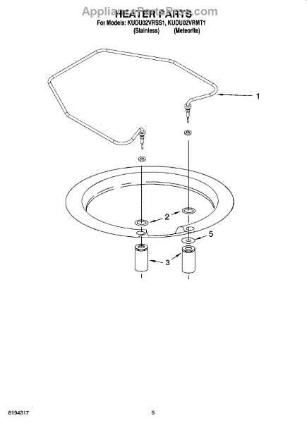 Parts for Kitchenaid KUDU02VRMT1: 05 - Heater Parts