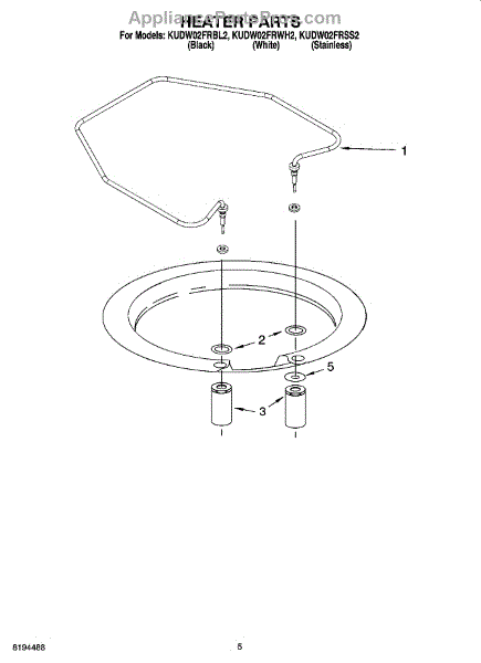 Parts for Kitchenaid KUDW02FRWH2: 05 - Heater Parts
