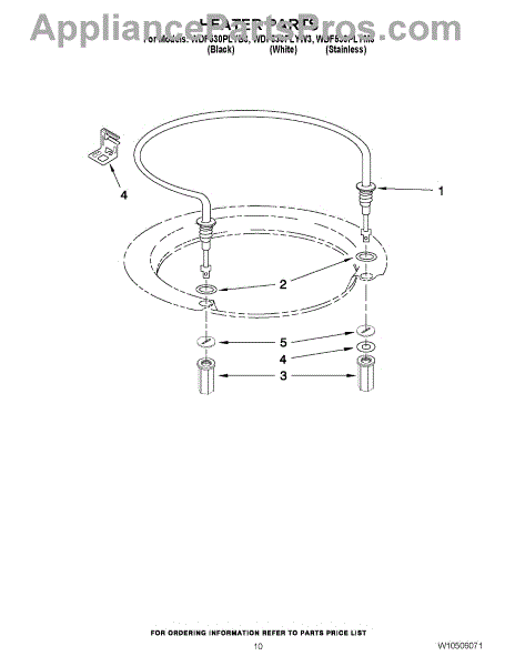Parts for Whirlpool WDF530PLYW3: 08 - Heater Parts
