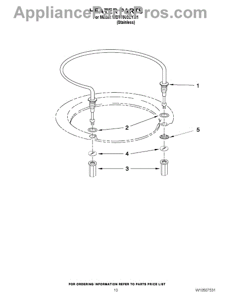The Heating Element is an OEM part for Whirlpool dishwashers. This element is for heating the water to the required temperature and for the drying cycle, allowing your dishes come out clean and dry. It's positioned at the bottom of the dishwasher tub, where it heats the water and aids in the drying process by evaporating moisture from the dishes.