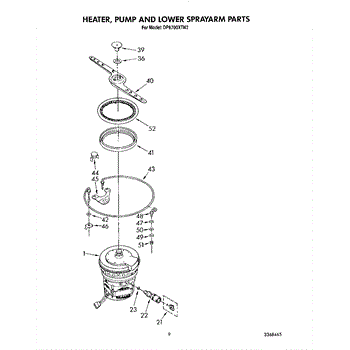 Parts for Whirlpool DP8700XTN2: 06 - Heater, Pump And Lower Spray Arm Parts