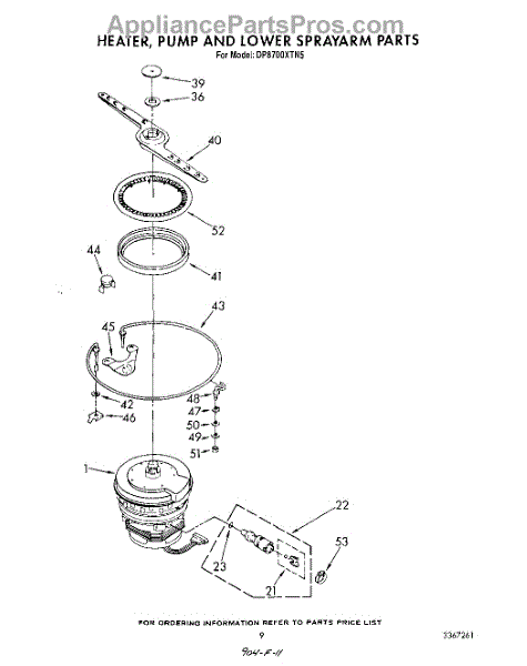 Parts for Whirlpool DP8700XTN5: 06 - Heater, Pump And Lower Spray Arm Parts
