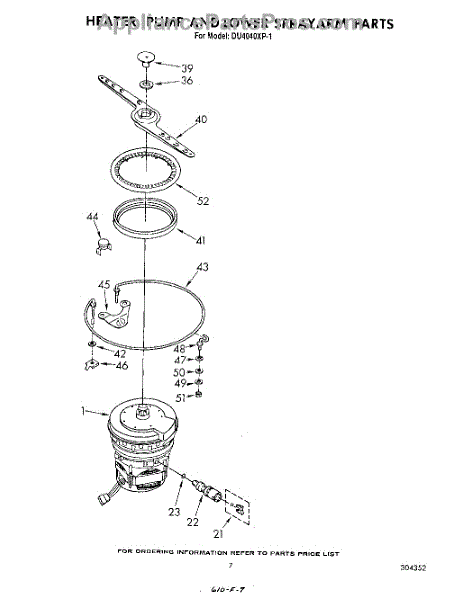 Parts for Whirlpool DU4040XP1: 05 - Heater, Pump And Lower Sprayarm Parts