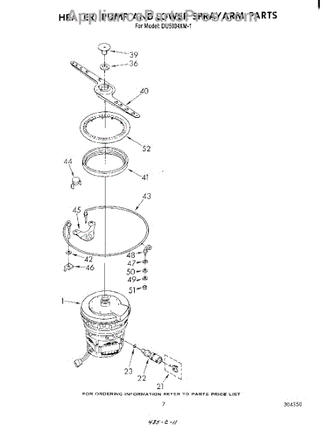 Parts for Whirlpool DU5004XM1: 05 - Heater, Pump And Lower Spray Arm Parts