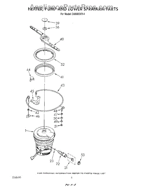 Parts for Whirlpool DU6000XR4: 04 - Heater, Pump And Lower Spray Arm Parts