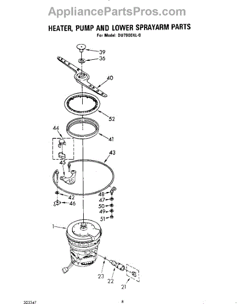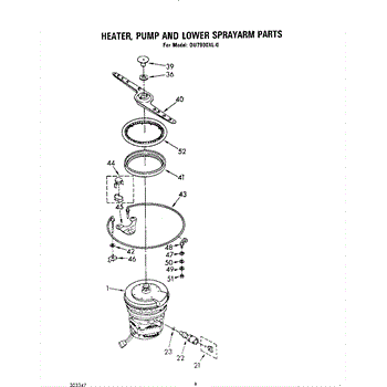 Parts for Whirlpool DU7900XL0: 05 - Heater, Pump And Lower Sprayarm Parts