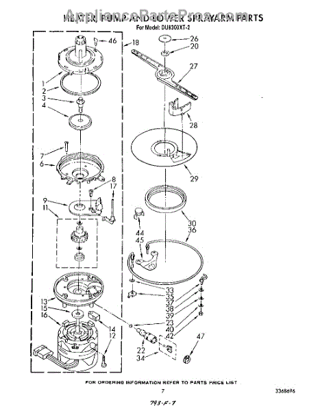 Parts for Whirlpool DU8300XT2: 05 - Heater, Pump And Lower Sprayarm Parts