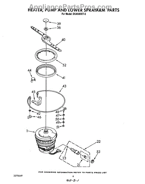 Parts for Whirlpool DU8500XT5: 04 - Heater, Pump And Lower Spray Arm Parts