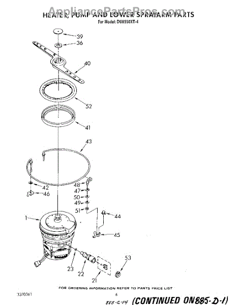 Parts for Whirlpool DU8550XT4: 04 - Heater, Pump, And Lower Spray Arm Parts