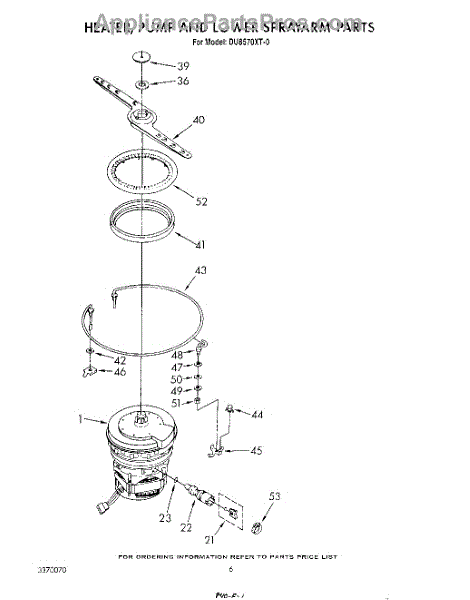 Parts for Whirlpool DU8570XT0: 04 - Heater, Pump And Lower Spray Arm Parts
