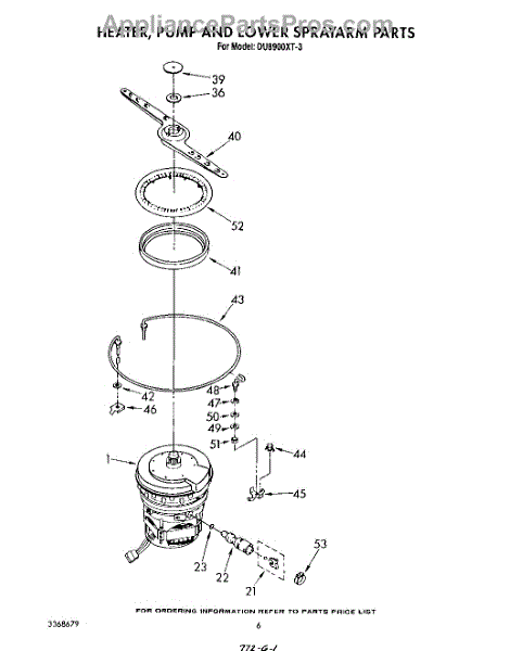 Parts for Whirlpool DU8900XT3: 04 - Heater, Pump And Lower Spray Arm Parts