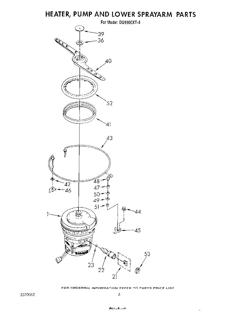 Parts for Whirlpool DU8900XT4: 04 - Heater, Pump And Lower Spray Arm Parts