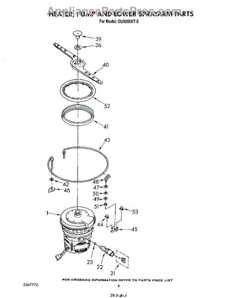 Parts for Whirlpool DU9200XT0: 04 - Heater, Pump And Lower Spray Arm Parts