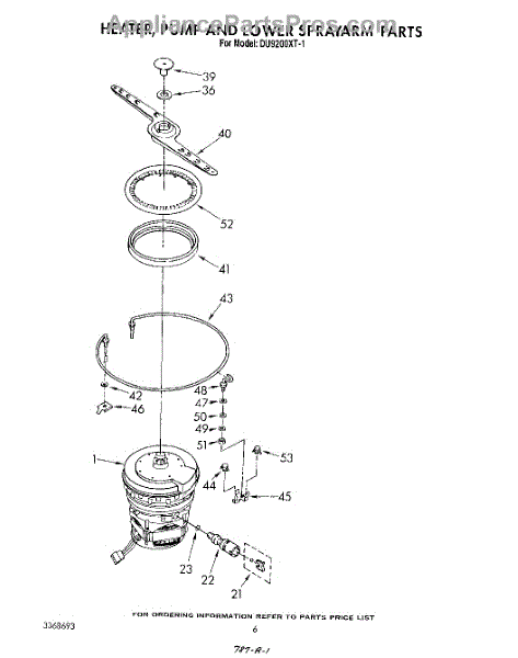 Parts for Whirlpool DU9200XT1: 04 - Heater, Pump And Lower Sprayarm Parts