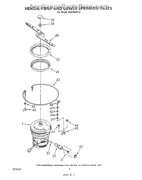 Parts for Whirlpool DU9200XT2: 04 - Heater, Pump And Lower Spray Arm Parts